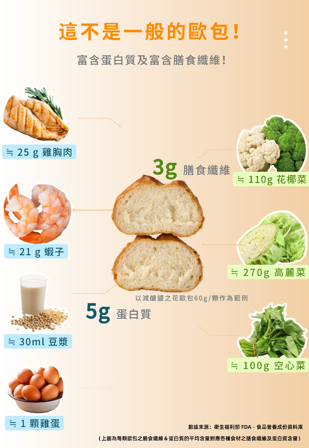 .淨醣量降30%、蛋白質提升10%,富含膳食纖維
