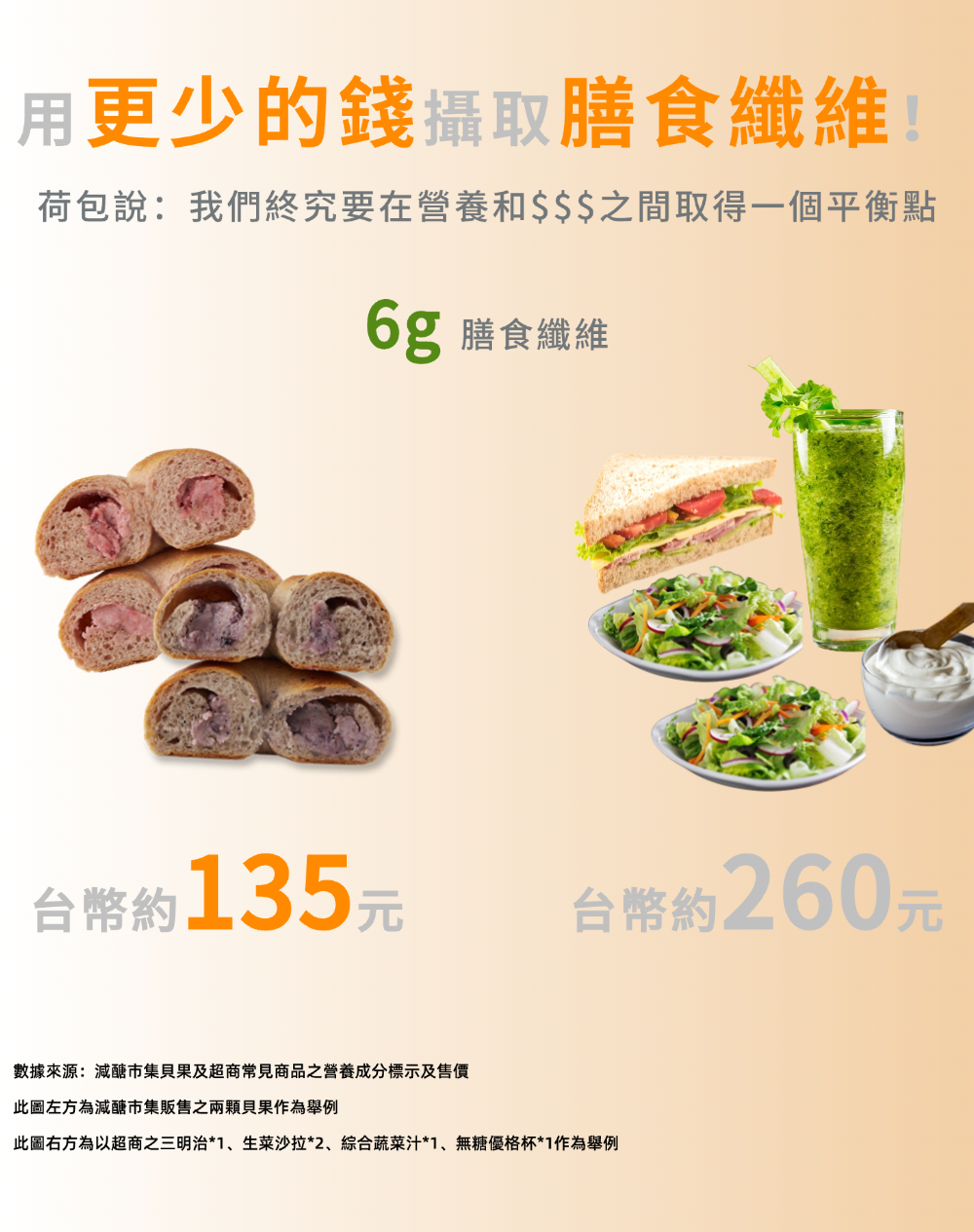 .熱量少30%、淨醣量下降30%、蛋白質提升10%,且富含膳食纖維