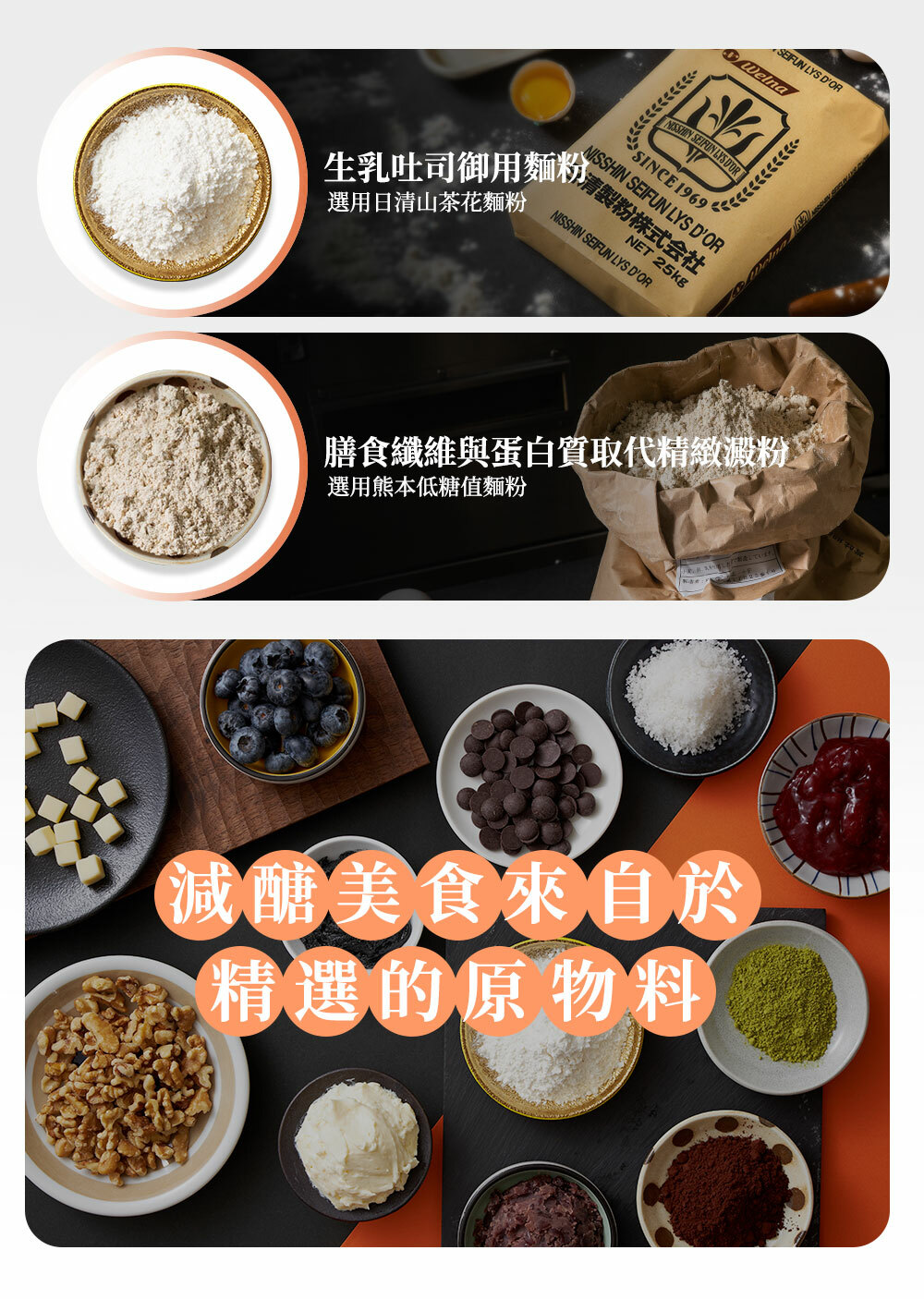 .採用熊本高纖低糖預拌粉,以小麥蛋白、大豆、小麥麩皮取代精緻麵粉